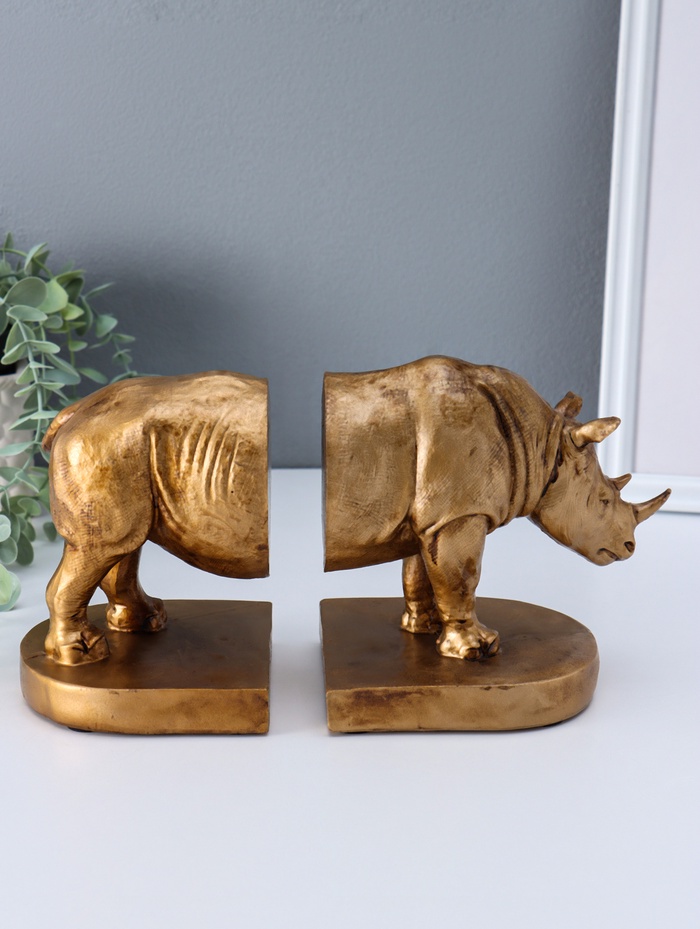 Держатель - подставка для книг полистоун «Носорог», набор 2 шт., 12×26.5×15 см