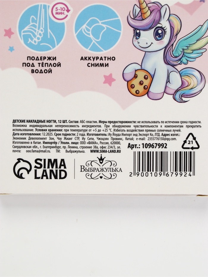 Технические характеристики Детские накладные ногти «Единорожка», 12 шт.