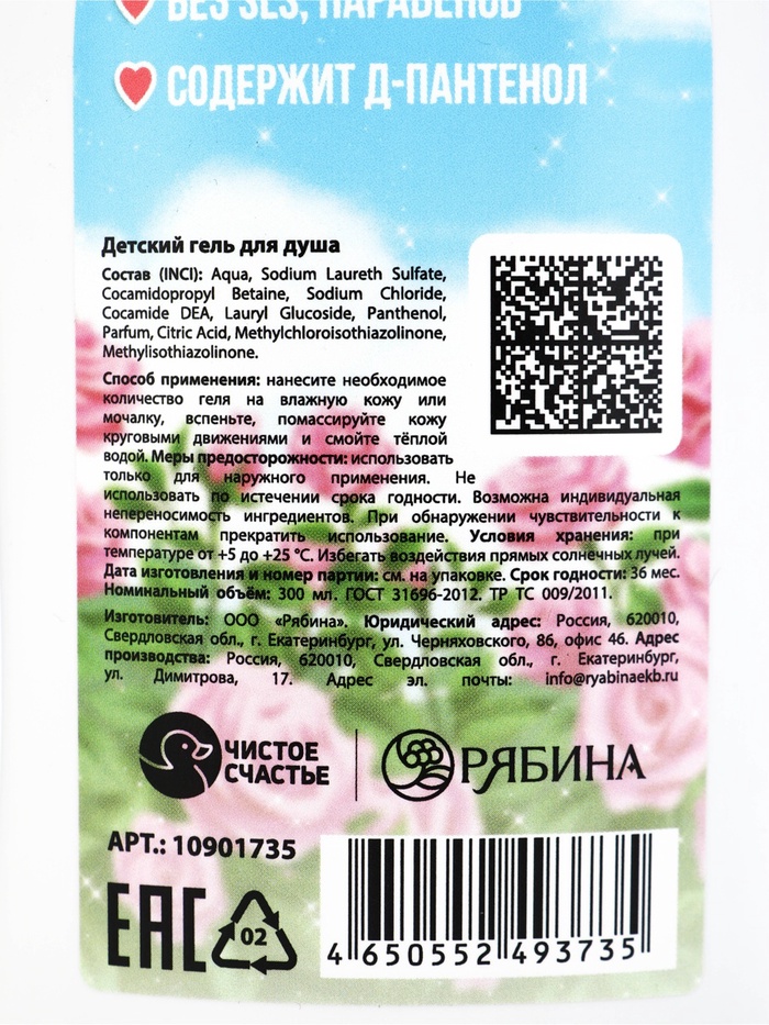 Технические характеристики Детский гель для душа, аромат: шипучая газировка, 300 мл, Кошечка