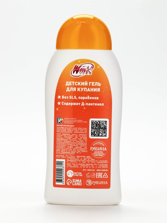 Технические характеристики Детский гель для купания, аромат: вишневый коктейль, 300 мл, Винкс