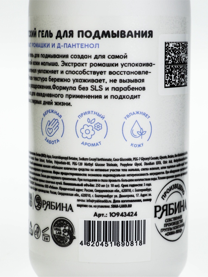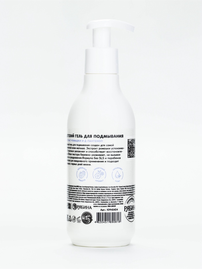 Технические характеристики Детский гель для подмывания «Зверята», с экстрактом ромашки, 250 мл, ULAB
