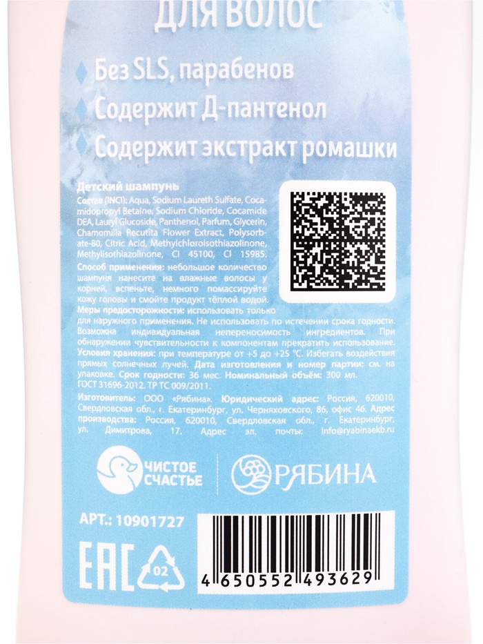 Технические характеристики Детский шампунь, аромат: арбузная жвачка, 300 мл, Снежная принцесса