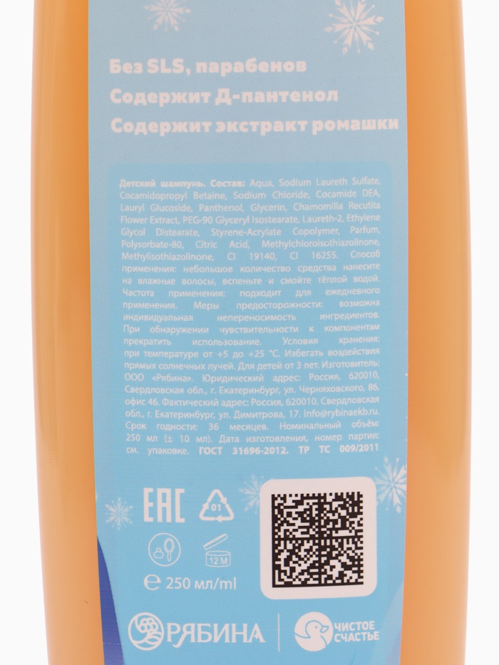 Технические характеристики Детский шампунь, аромат пломбир, 250 мл, Снежная принцесса