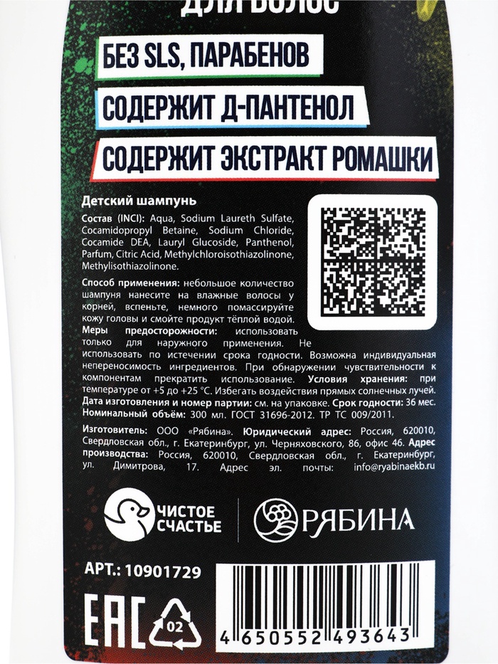 Технические характеристики Детский шампунь для волос, аромат: шипучая газировка, 300 мл, Супергерой