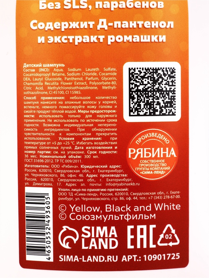 Технические характеристики Детский шампунь для волос, аромат: арбузные конфетки, 300 мл, Чебурашка