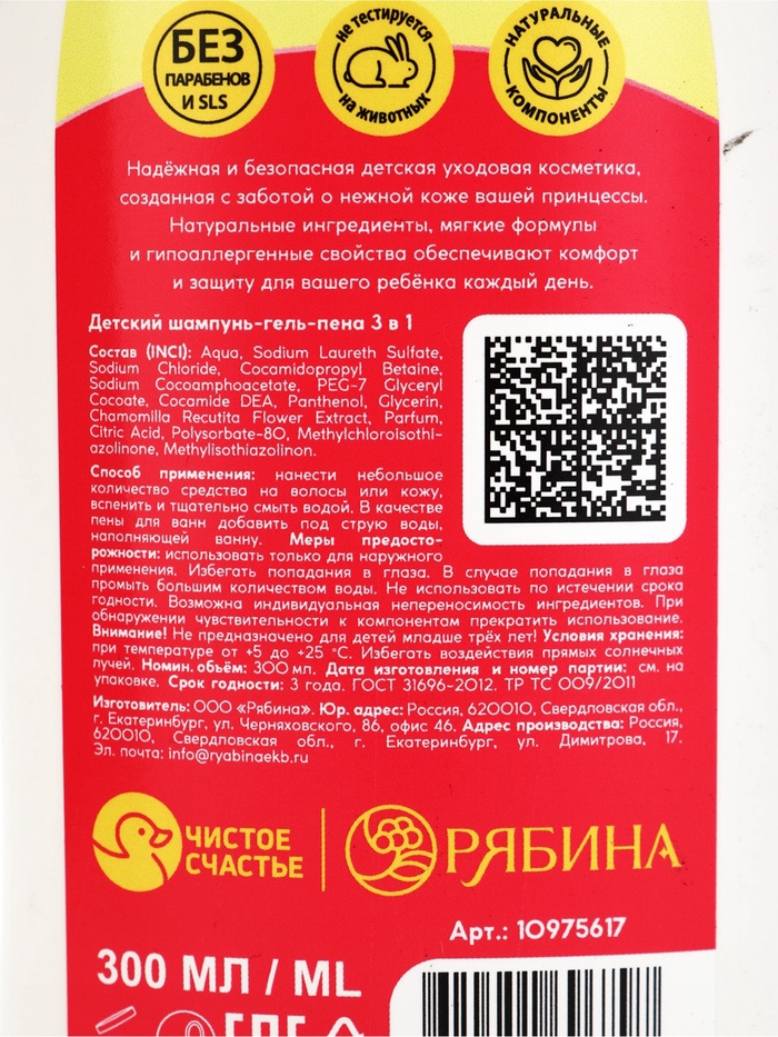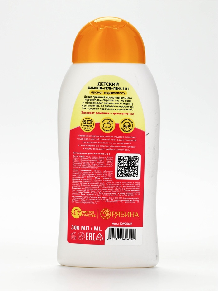 Технические характеристики Детский шампунь-гель-пена 3в1, аромат: маршмеллоу, 300 мл, Принцессы