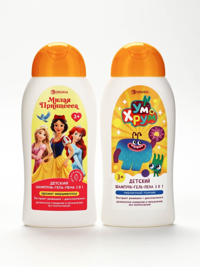 Детский шампунь-гель-пена 3в1, аромат: маршмеллоу, 300 мл, Принцессы