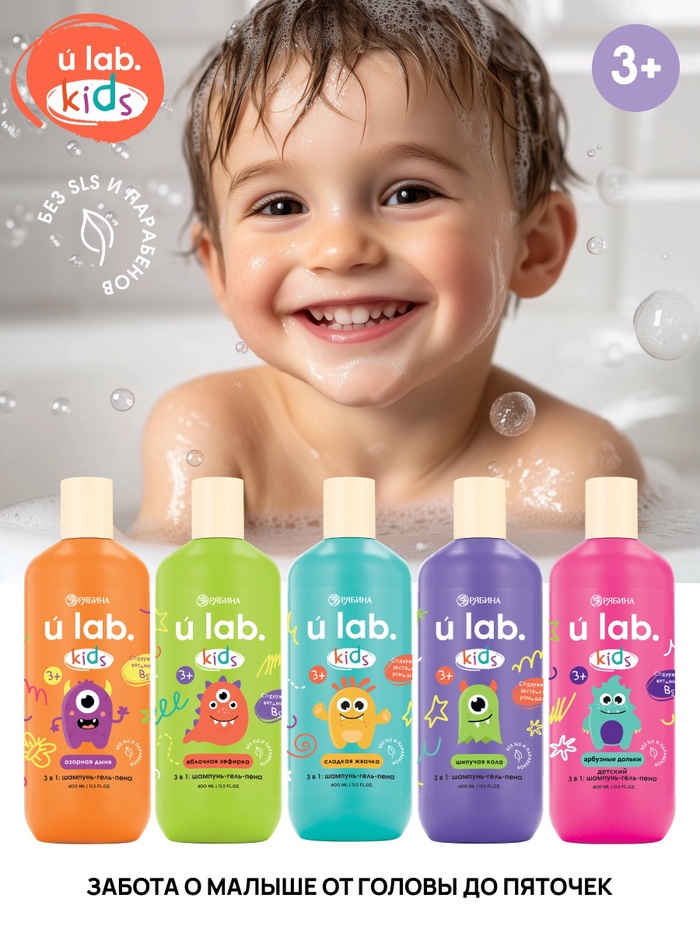 Детский шампунь-гель-пена 3в1 «Монстрики», 400 мл, аромат арбузные дольки, ULAB