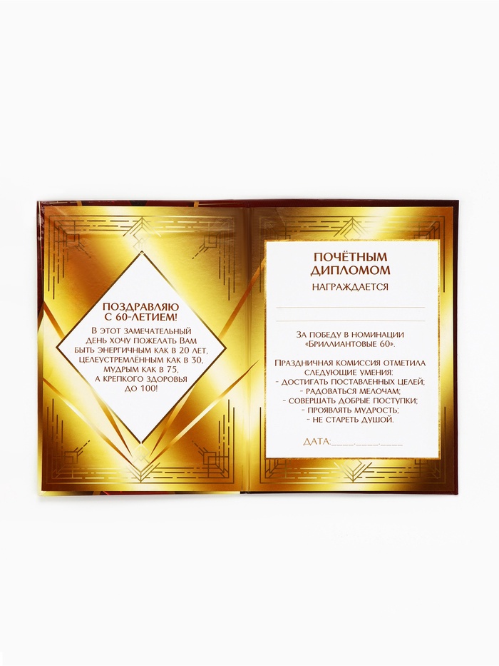 Технические характеристики Диплом «С Юбилеем 60 лет», 11×16 см