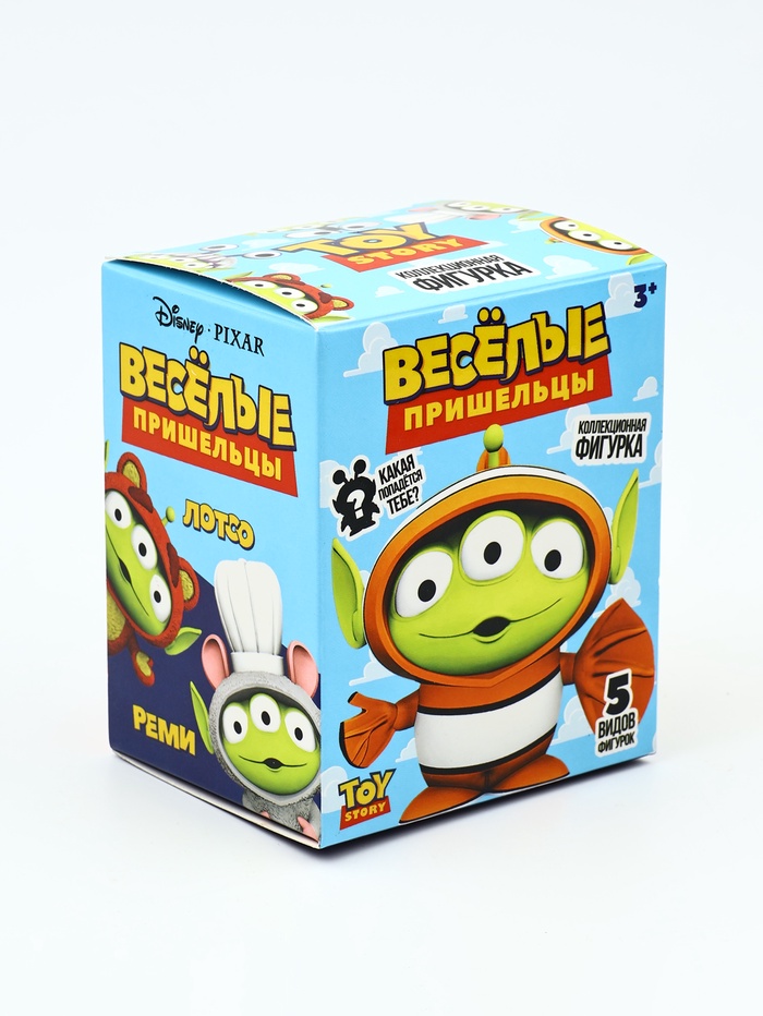 Готовы к космическому приключению? Забавные инопланетяне из любимых мультфильмов ждут тебя, чтобы стать твоими новыми друзьями! Каждая фигурка — это маленький сюрприз, который подарит радость и вдохновит на новые истории. Открой коробку и познакомься с одним из пяти очаровательных героев: может быть, это будет Бу со своим добром, Лотсо с его хитрыми планами, Реми с гастрономическими фантазиями, Немо с морскими приключениями или Валли с мечтами о чистой планете!