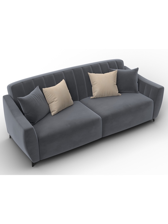 Стильная, надежная и функциональная модель. Современный механизм раскладки «книжка» позволяет легко трансформировать диван в кровать. Под сиденьем расположены вместительные ниши для белья. Мягкие изогнутые подлокотники и четыре декоративные подушки обеспечивают комфорт и эстетику.