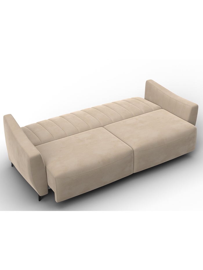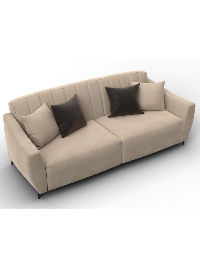 Стильная, надежная и функциональная модель. Современный механизм раскладки «книжка» позволяет легко трансформировать диван в кровать. Под сиденьем расположены вместительные ниши для белья. Мягкие изогнутые подлокотники и четыре декоративные подушки обеспечивают комфорт и эстетику.