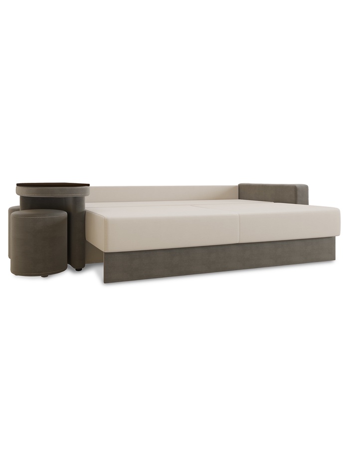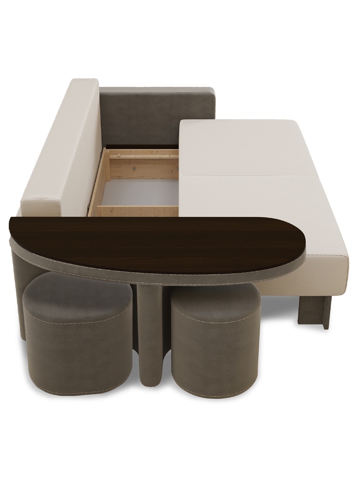 Диван угловой левый Сантана 4, со столом/Ultra ivory + Ultra Stone