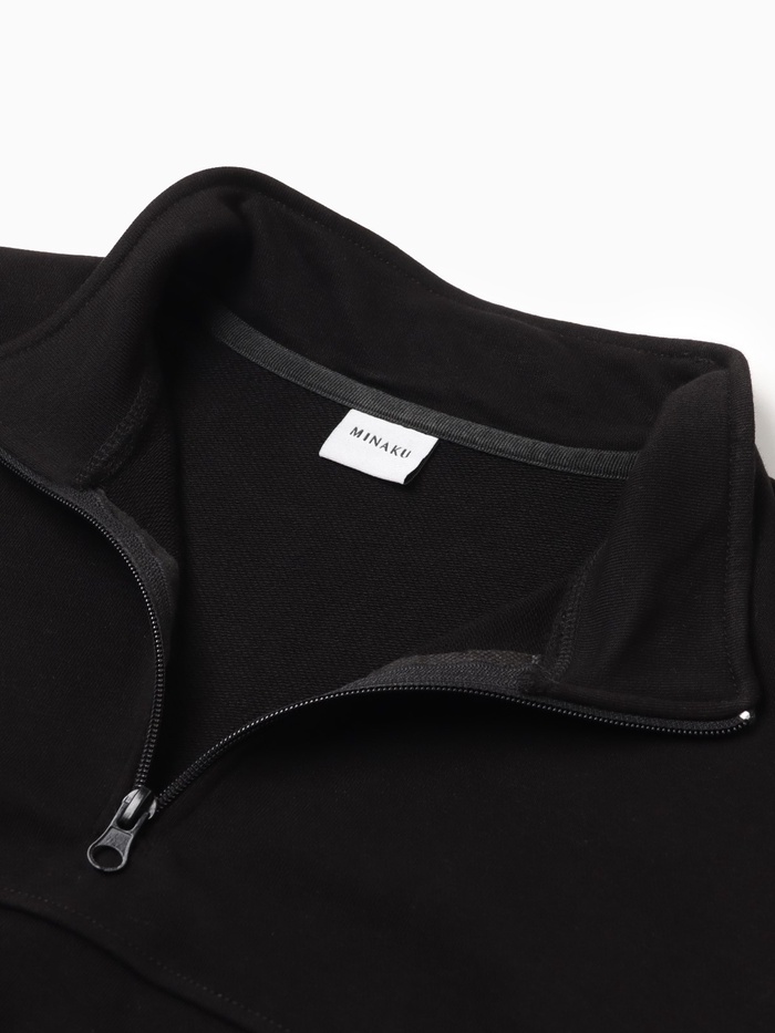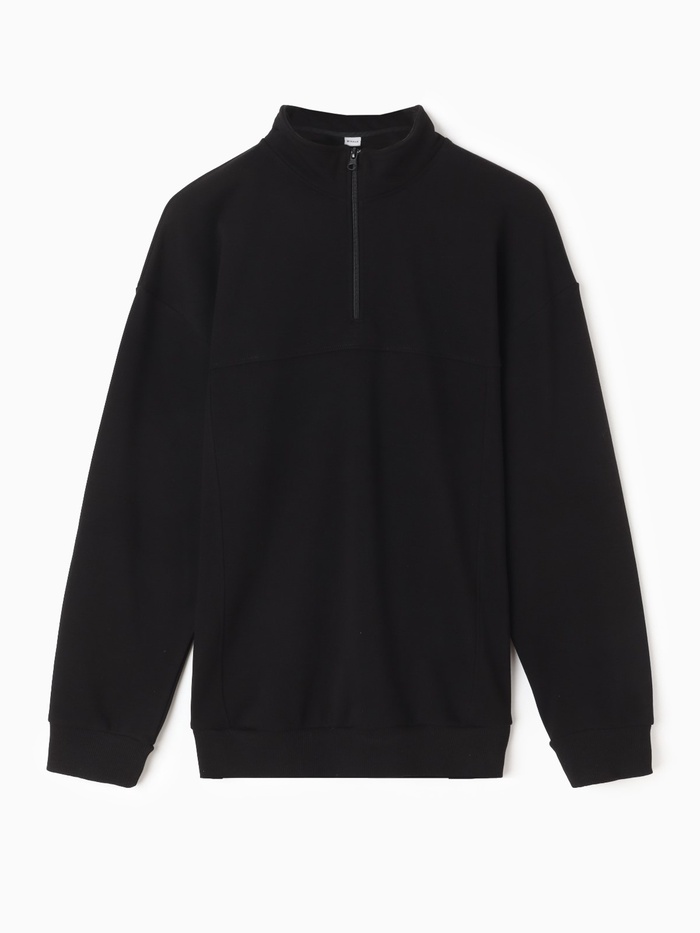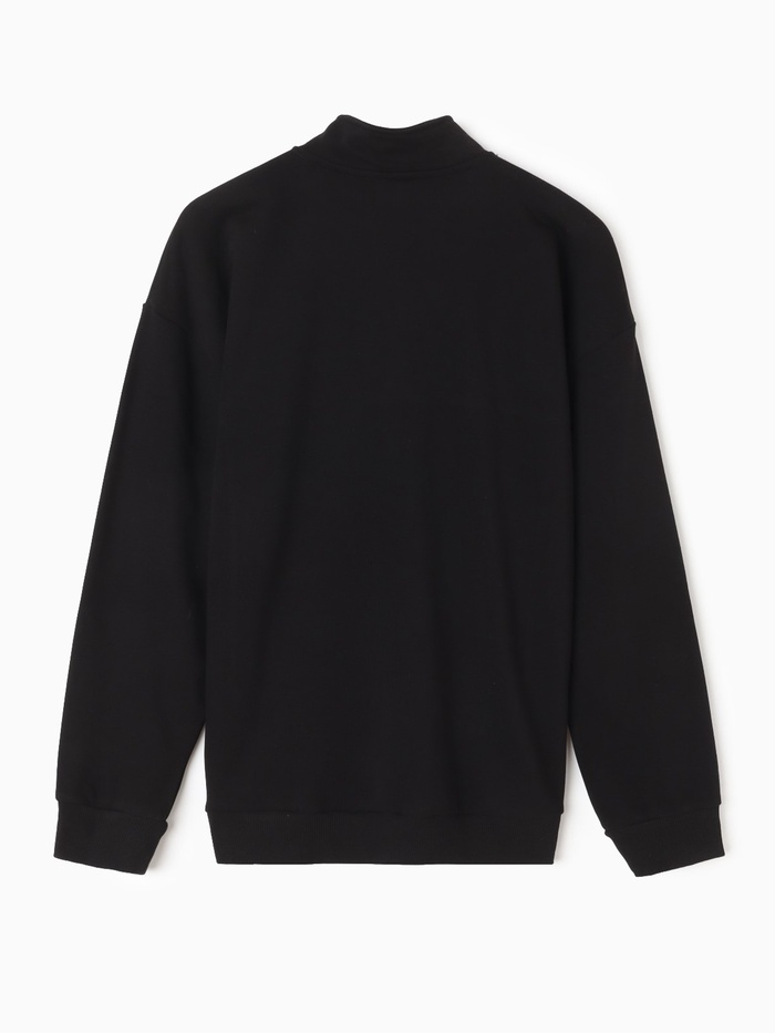 Мужской джемпер чёрного цвета — универсальная вещь для любого сезона. Модель выполнена из мягкого футера с хлопком, что обеспечивает комфорт и приятные ощущения при носке. Полуприлегающий крой и воротник-стойка придают образу современность, а замок добавляет удобства в использовании.