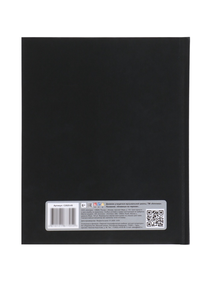 Дневник д/муз шк 48л Клавиши на черном, 7БЦ, Уф-лак, глянц лам, 165х210мм, офсет