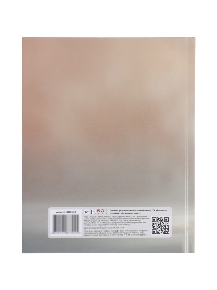 Дневник д/муз шк 48л Котенок-гитарист, 7БЦ, Уф-лак, глянц лам, 165х210мм, офсет