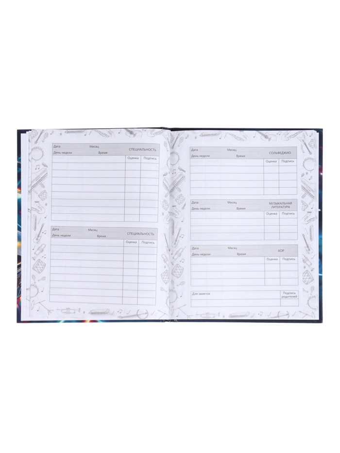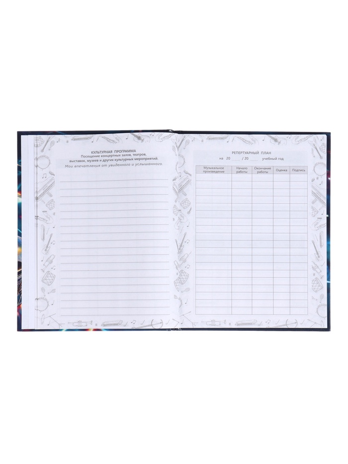 Дневник д/муз шк 48л Неон.Музыкальный инструмент,7БЦ,Уф-лак,глянц лам,165х210мм,офсет