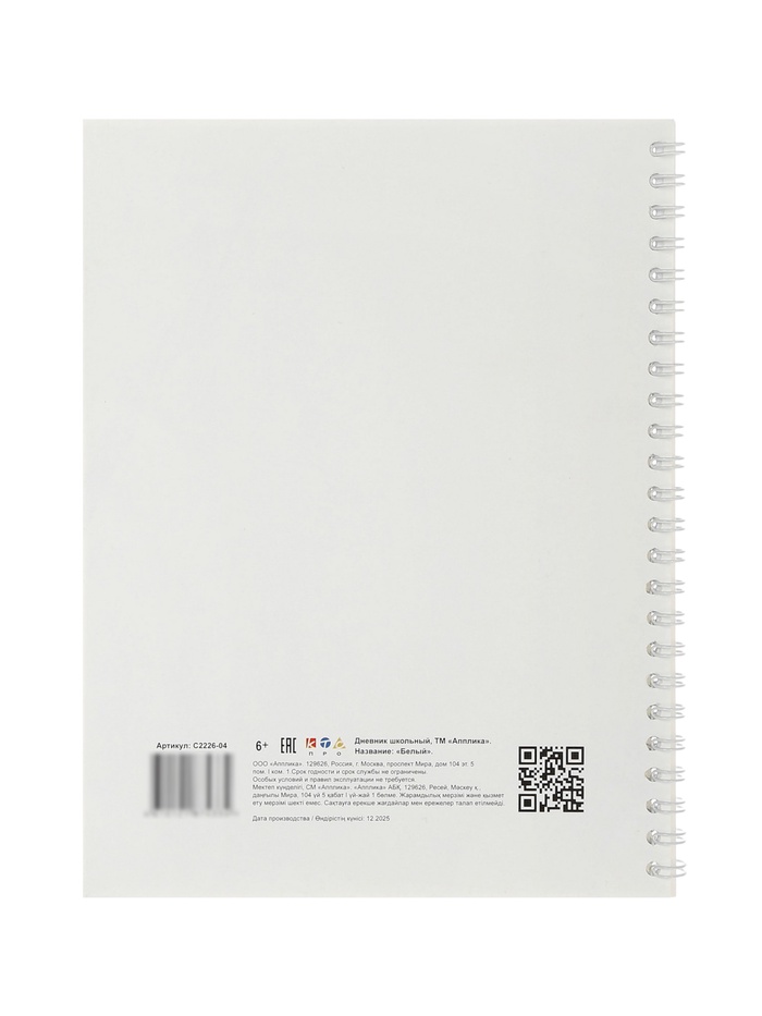 Дневник выполнен в мягкой обложке, благодаря чему он лёгкий и удобный для ежедневного использования. Внутренние страницы изготовлены из офсетной бумаги плотностью около 60–65 г/м², что обеспечивает комфортное письмо. Скрепление на скобе делает изделие прочным и удобным в использовании на протяжении всего учебного года.