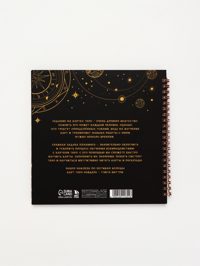 Технические характеристики Дневник таролога, твёрдая обложка, 20×20 см, 85 л. «Черный»
