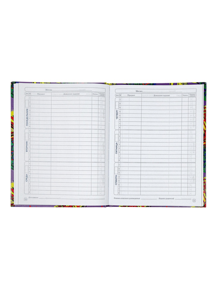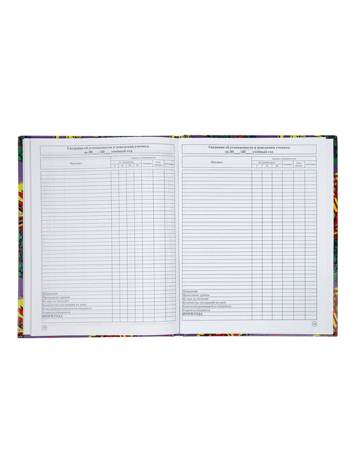 Дневник выполнен в твёрдом переплёте с глянцевой ламинацией, что обеспечивает защиту от повреждений и долговечность при ежедневном использовании. Внутренние страницы изготовлены из офсетной бумаги плотностью около 65 г/м², обеспечивающей комфортное письмо. Сшивной блок повышает прочность конструкции и удобство эксплуатации.