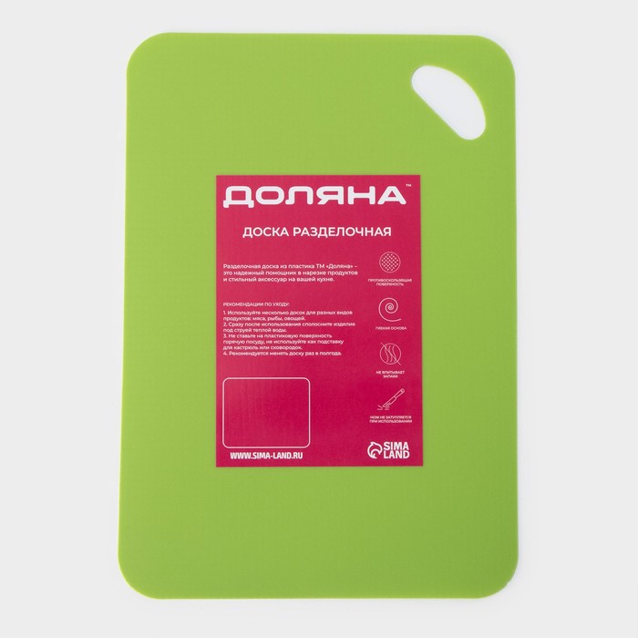 Технические характеристики Доска разделочная противоскользящая гибкая Доляна, 33×23 см, цвет зелёный