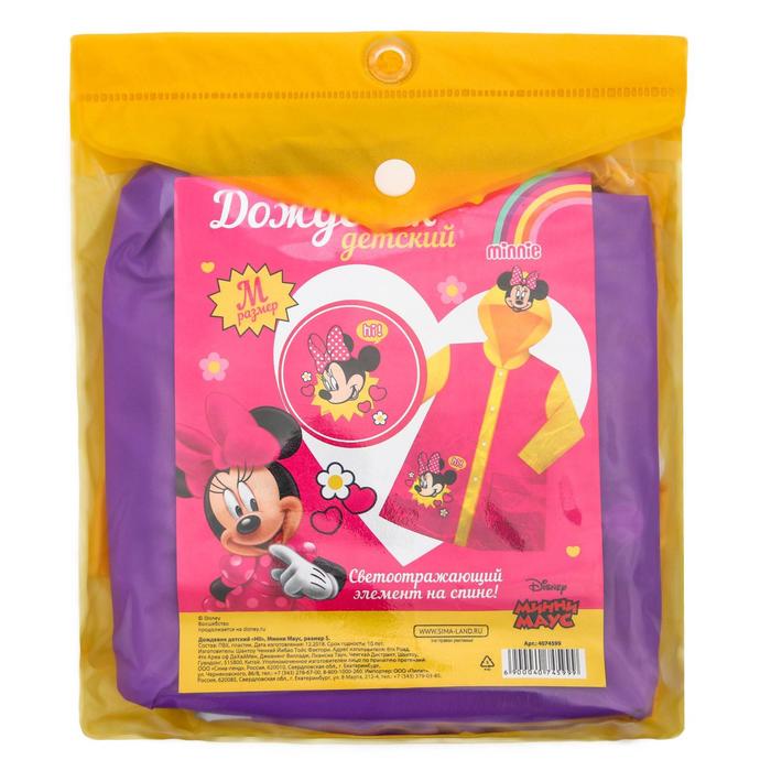 Дождевик детский, размер M, 100-110 см, Минни Маус
