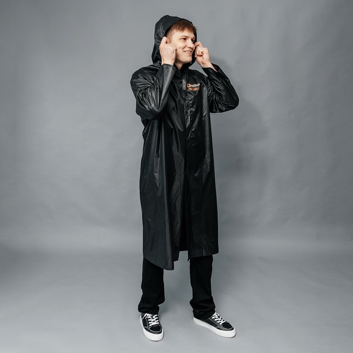 Технические характеристики Дождевик взрослый мужской плащ DANGER, на молнии, размер 50-54, цвет чёрный