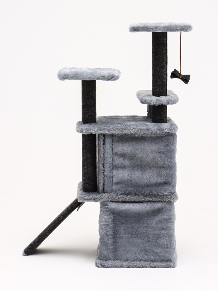 - Многоуровневый комфорт: устойчивые полки и когтеточки — каждый элемент отвечает естественным потребностям кошки. Любительница высоты получит свою смотровую площадку, а засоня — мягкое укрытие с бортами.