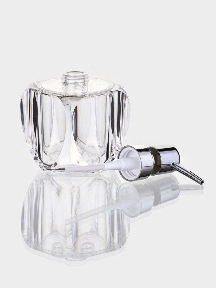 Прозрачный дозатор для мыла «Хрусталь» — аксессуар, который работает как функциональный элемент и как деталь интерьера. Гранёная форма и чистый акрил создают эффект стеклянной посуды, но без хрупкости. Объём 220 мл подходит для ежедневного использования в ванной или на кухне — заправляется через верхнюю крышку, а дозирующий механизм срабатывает плавно и без залипаний.