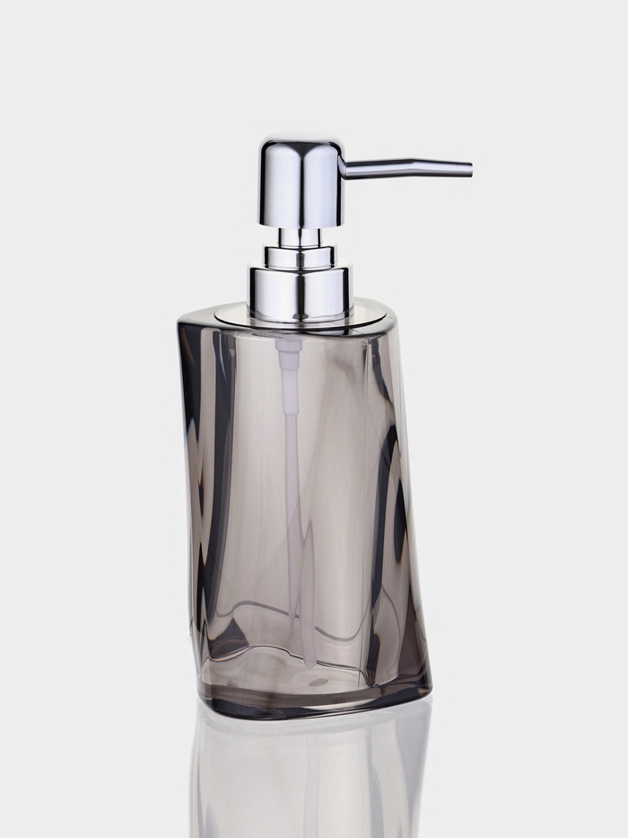 Дозатор для мыла «Изгиб» — аксессуар с плавными линиями и глубоким прозрачно-чёрным оттенком, который выглядит как современная скульптура, а не просто контейнер. Акриловый корпус с изогнутыми гранями создаёт эффект объёма и играет светом, добавляя ванной комнате утончённости. Объём 210 мл подходит для ежедневного использования, а ручной механизм дозирования работает без залипаний и капель.