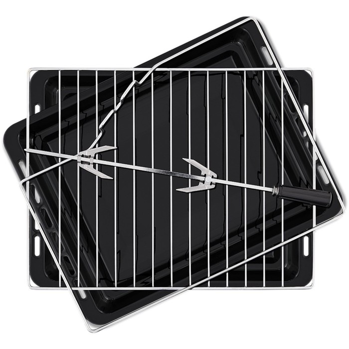 Духовой шкаф оснащен 5-ти уровневыми хромированными направляющими и телескопическими направляющими (1 уровень), которые позволяют легко выдвигать противень и решетки за пределы духовки.