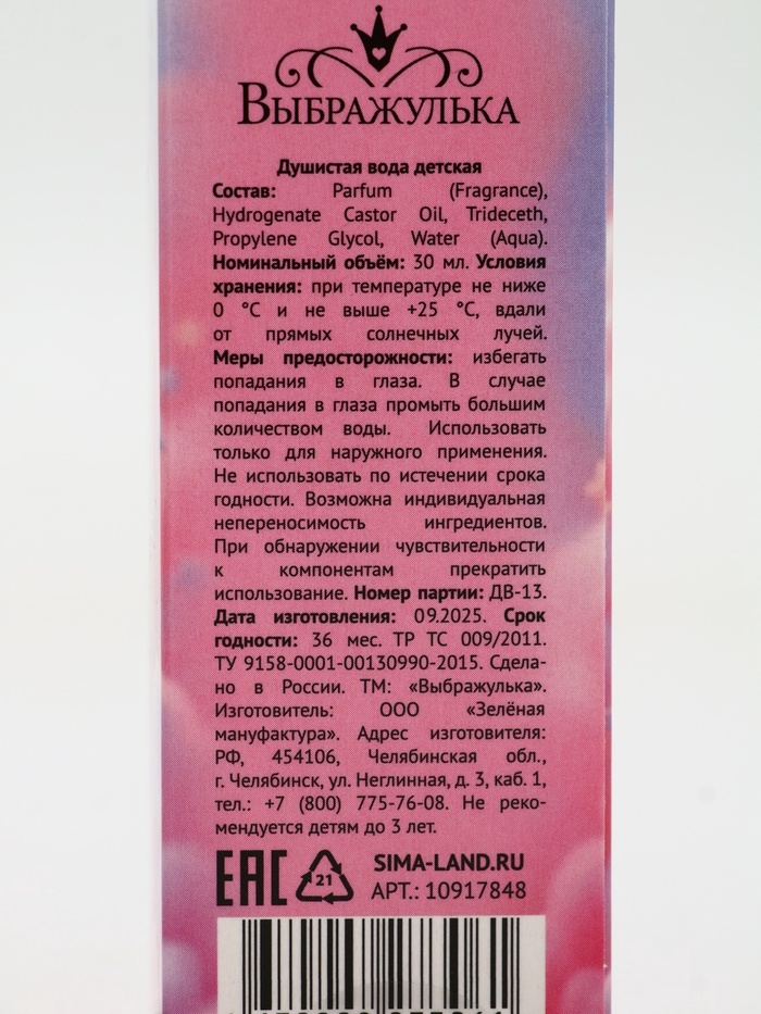 Материалы из которых произведен товарВода, ароматизатор | Минимальная партия1 | НовинкаДа |