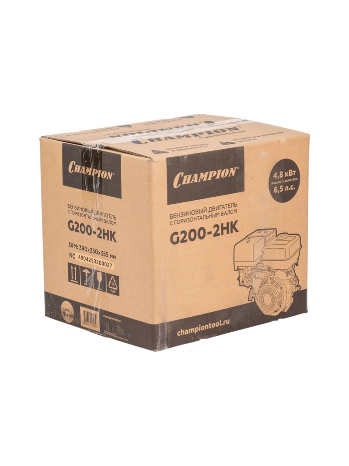 Технические характеристики Двигатель CHAMPION (6,5лс/4,8кВт, 196см³, 19мм, шпонка, 13кг)