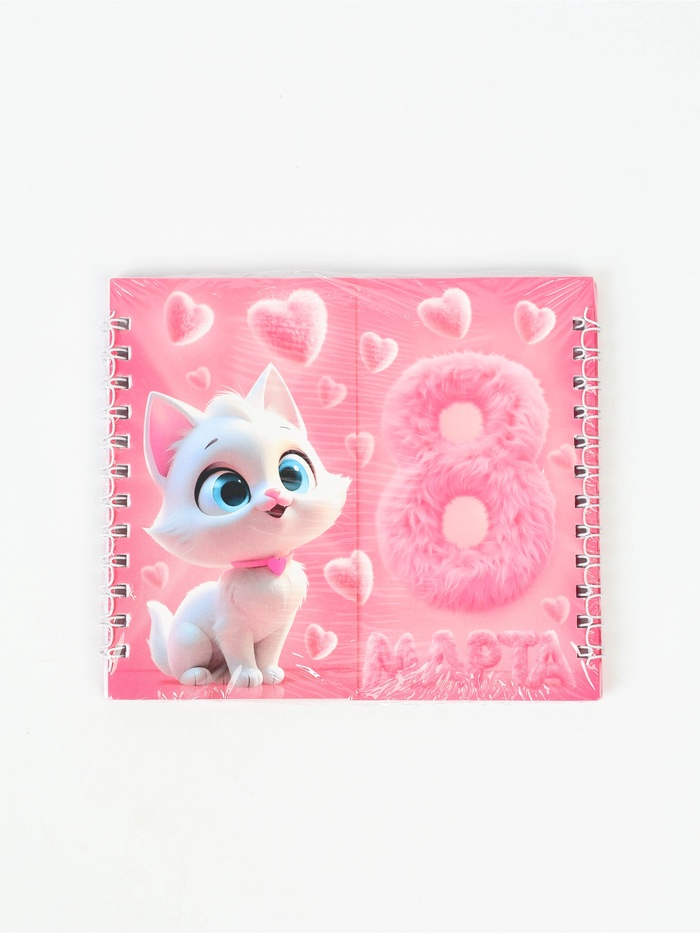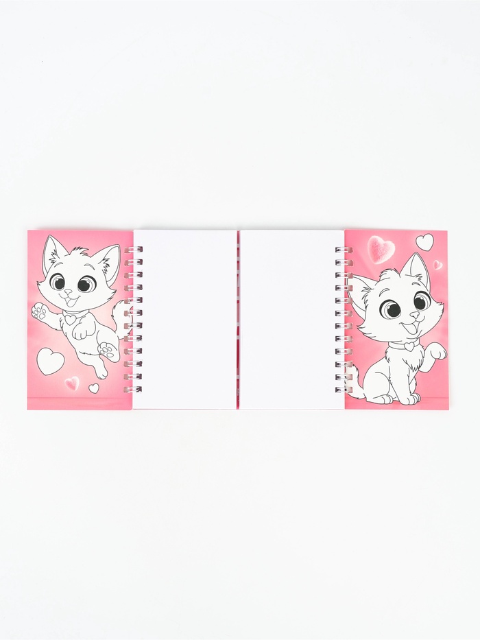 Двойной блокнот на гребне, мягкая обложка, размер 14,5 х12см, 48 л "Кошечка"
