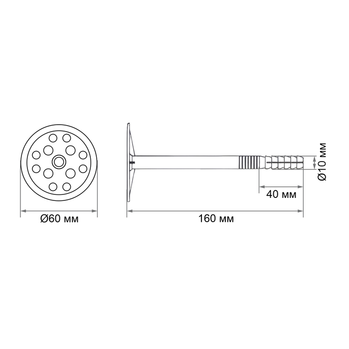 | Длина дюбеля, мм | 160 |