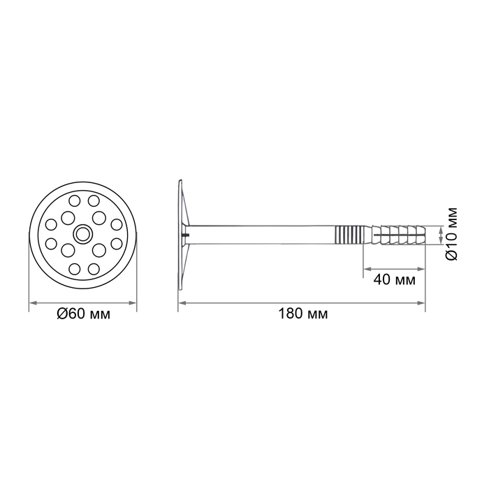 Технические характеристики Дюбель Steelrex, для утеплителя, с металлическим гвоздем, 10×180 мм, черный, 500 шт.