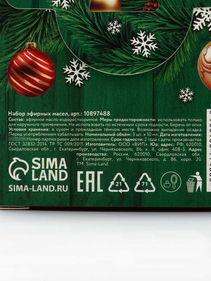 Технические характеристики Эфирное масло, набор 3 шт. × 10 мл, Банный Дух
