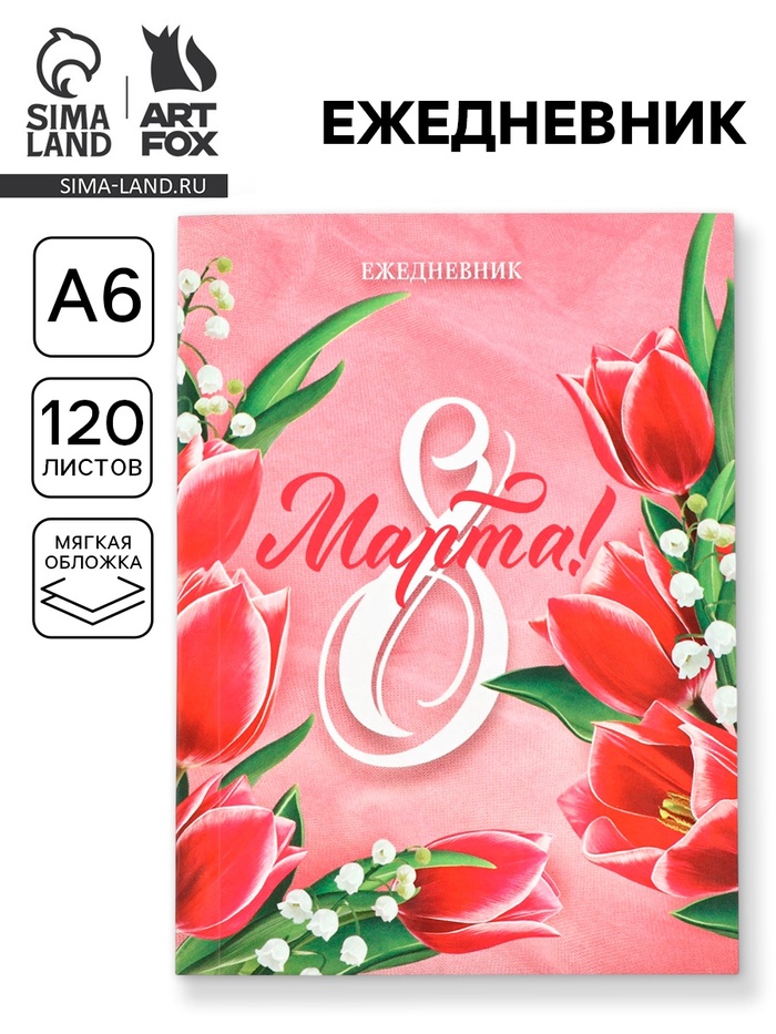 Технические характеристики Ежедневник в мягкой обложке А6, 120 л "Красные тюльпаны"