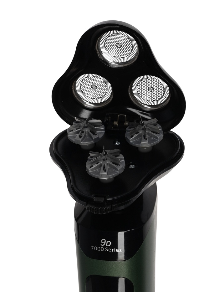 Прибор предназначен для сухого бритья и работает автономно до 60 минут после полного заряда аккумулятора. Встроенный триммер позволяет аккуратно подравнивать бороду, усы и виски, а индикатор заряда батареи на дисплее предупреждает о необходимости подзарядки. Бритва питается от аккумулятора с USB-подключением — это удобно в поездках или при отсутствии розетки рядом.