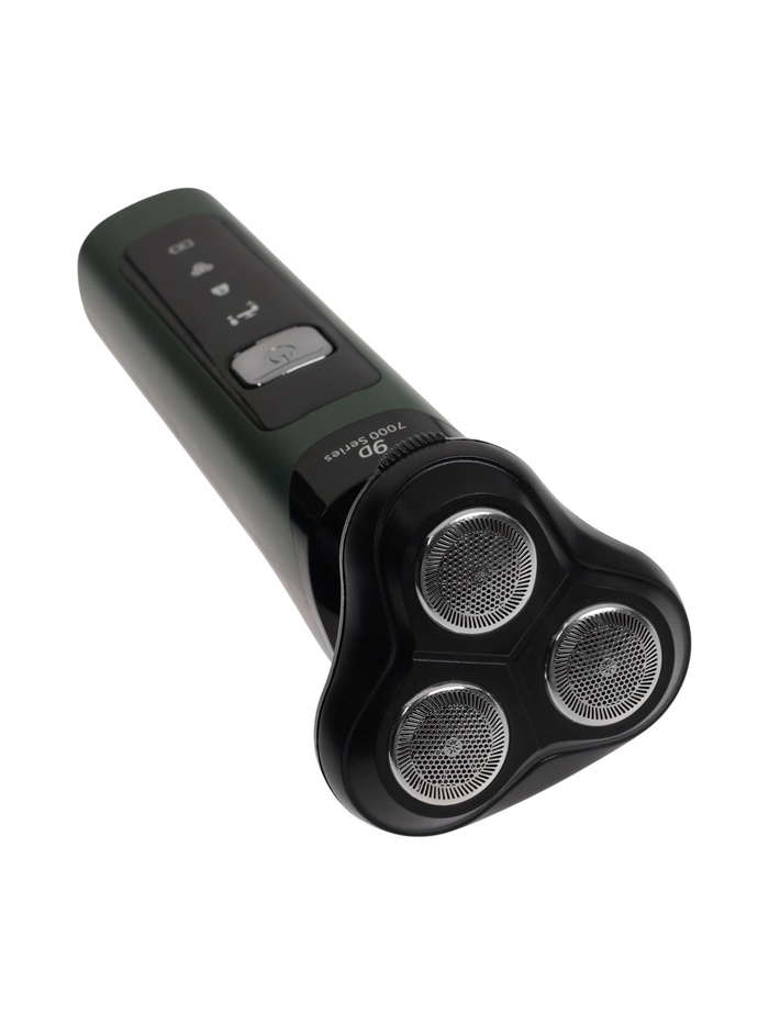 Эта компактная аккумуляторная электробритва выделяется стильным дизайном в чёрно-зёлёной гамме и сочетает простоту использования с продуманной функциональностью. Роторная система с тремя головками обеспечивает плотный контакт с кожей и равномерное снятие щетины, благодаря чему бритьё проходит быстро и с минимальным количеством пропущенных волосков. Лёгкий корпус удобно лежит в руке, что делает процесс ухода за лицом комфортным даже в начале дня.