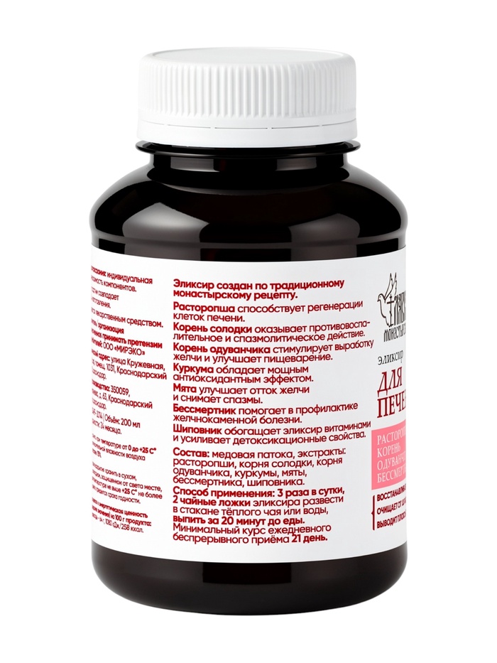 Технические характеристики Эликсир для печени «Монастырская лавка», пластик, 200 мл