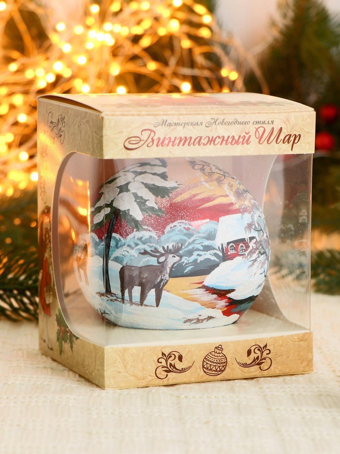 - Диаметр — 10 см, крупный формат, привлекает внимание, идеально смотрится на средних и больших ёлках.