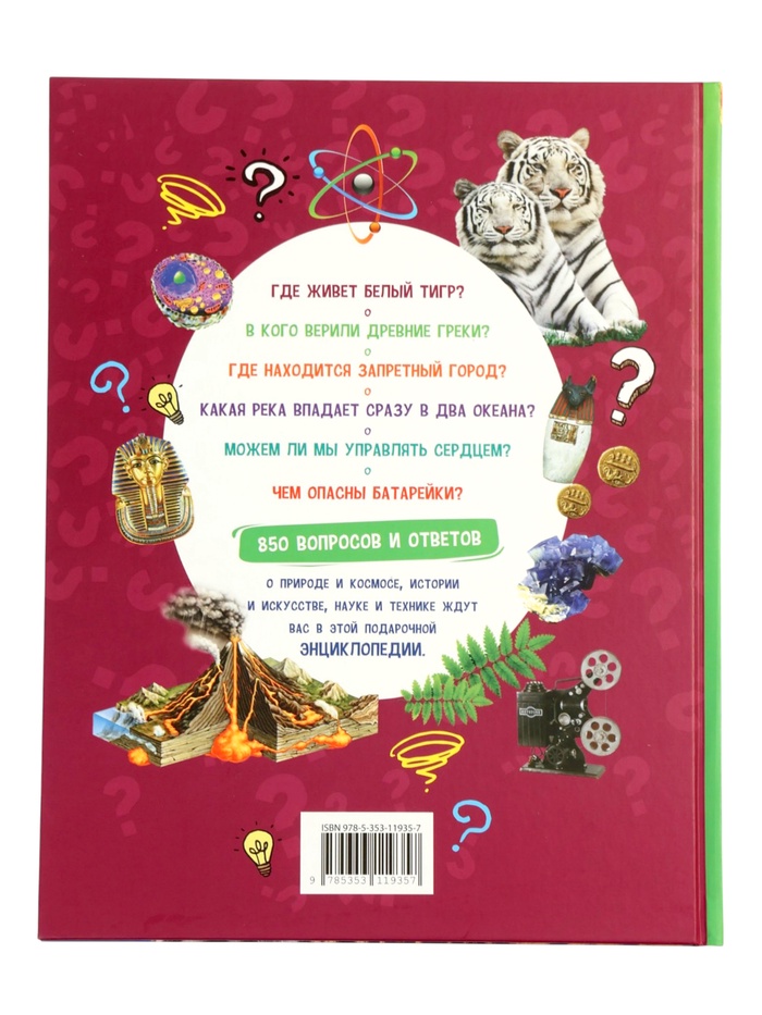 Энциклопедия обо всем в твёрдом переплёте «850 вопросов и ответов», 120 стр.