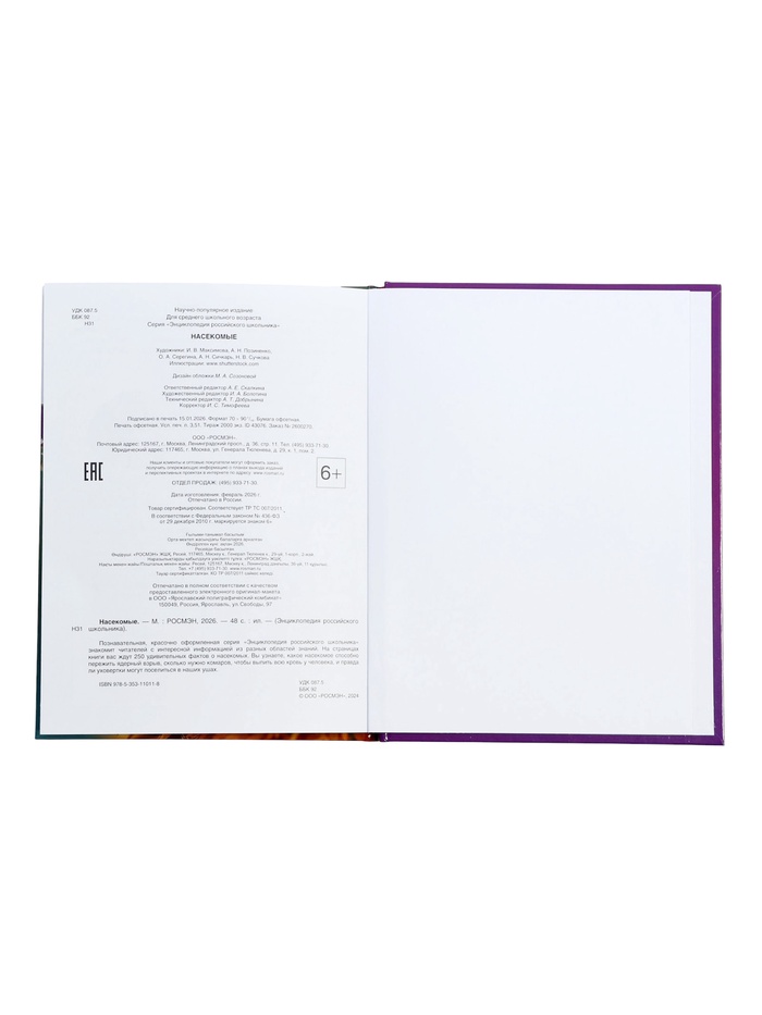 Технические характеристики Энциклопедия российского школьника "Насекомые"