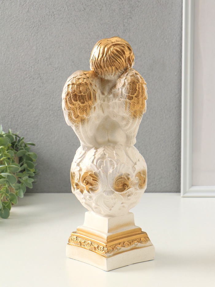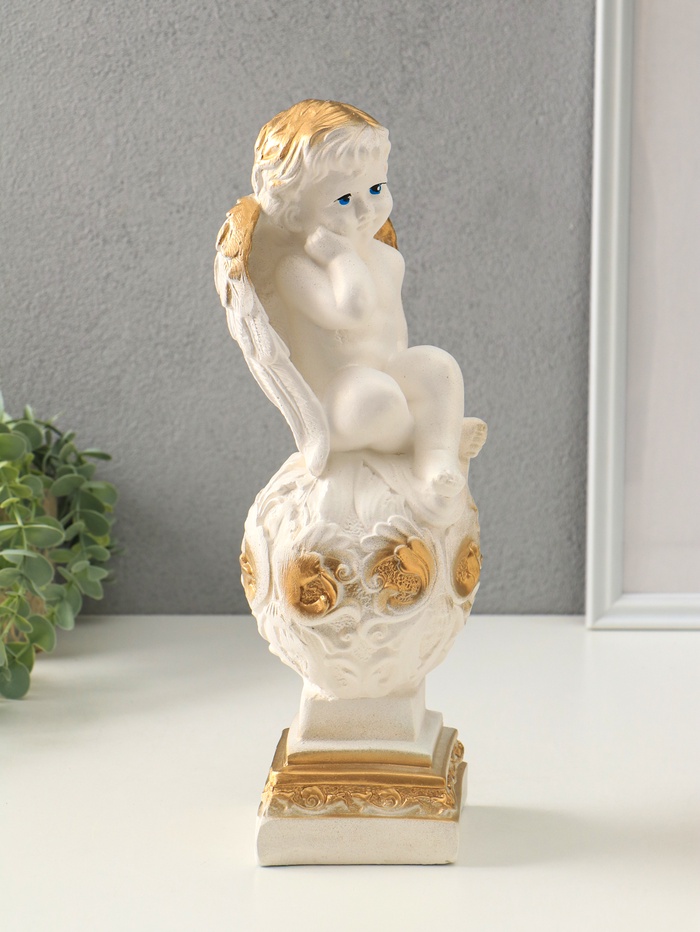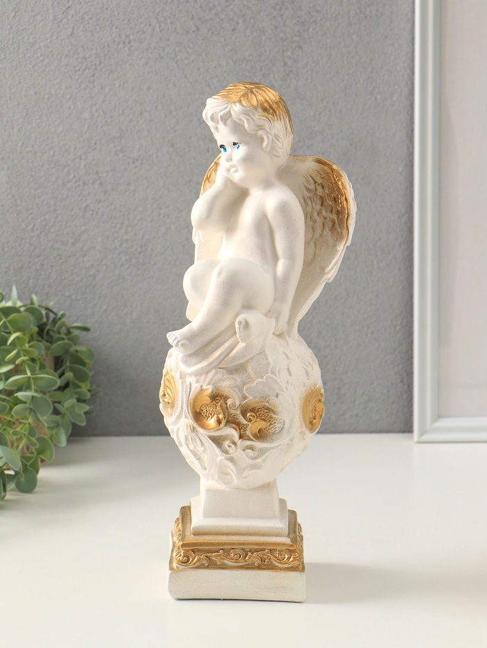 Фигура "Ангел на шаре" белый, 37х12х12 см