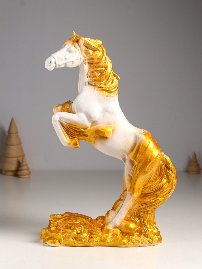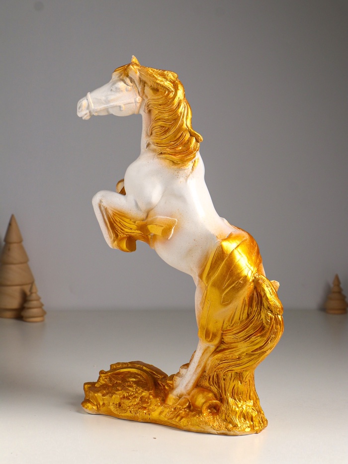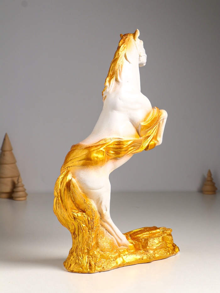 Эта гипсовая фигура белого коня с золотыми акцентами станет символом силы и триумфа в вашем интерьере. Она воплощает дух победы, делая её значимым подарком к Новому году, 23 Февраля или другим памятным датам. Статуэтка передаёт мощь и грацию, принося в дом энергию и успех.