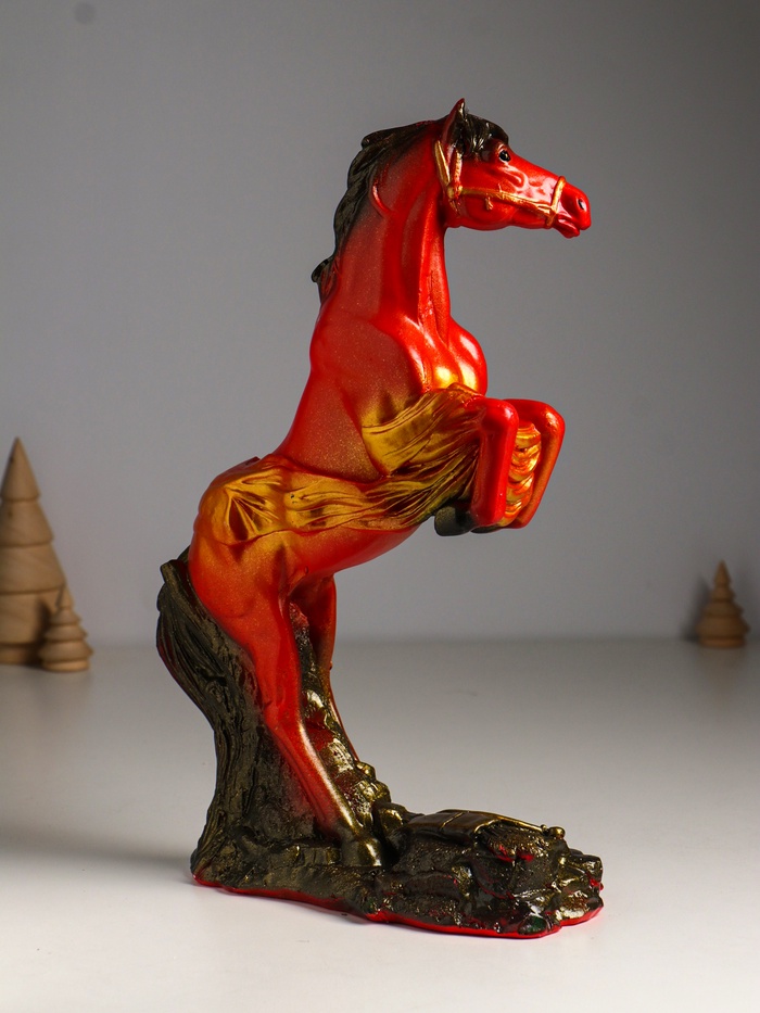 Эта гипсовая фигура коня в праздничном оформлении станет выразительным акцентом в интерьере и сильным подарком по особому случаю. Сочетание насыщенного красного и золота создаёт атмосферу торжества и подчёркивает статус владельца.