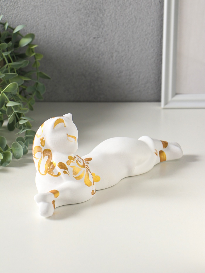 Фигура керамика «Кошка Багира лежит», 26 см, белый