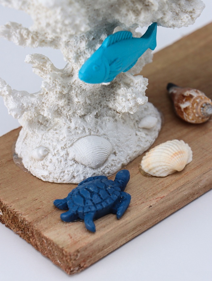 - Материал полистоун точно передаёт фактуру морских обитателей и сложную структуру кораллов.