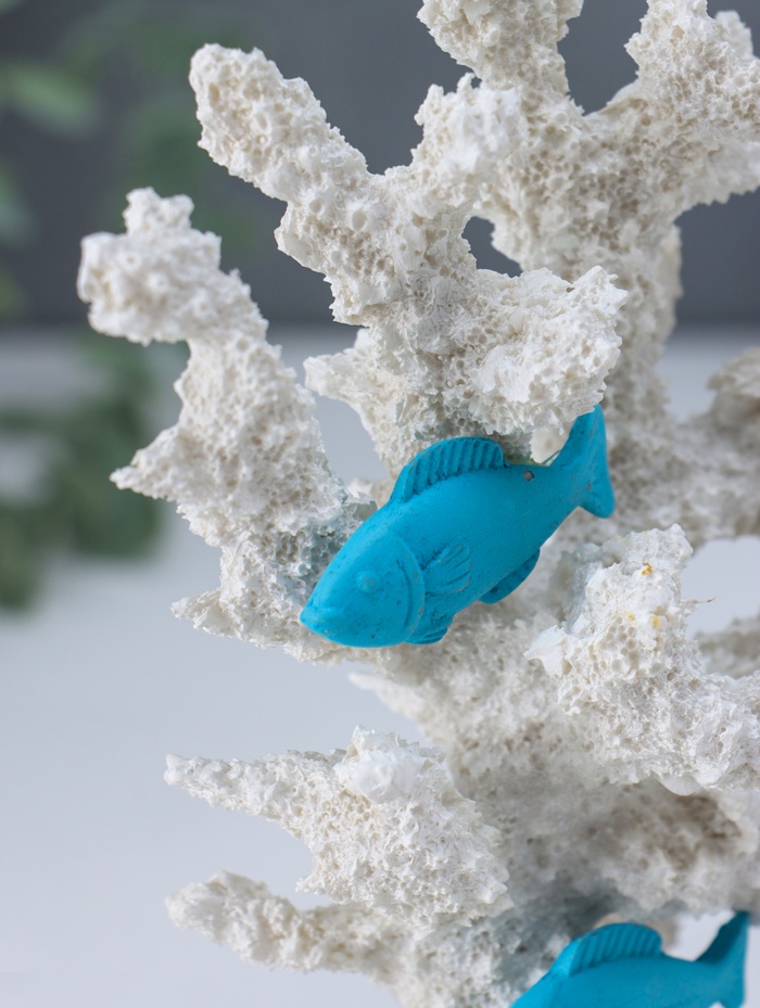 Фигура полистоун «Рыбки и морской конёк у белых кораллов», 7.5×15.7×19.5 см